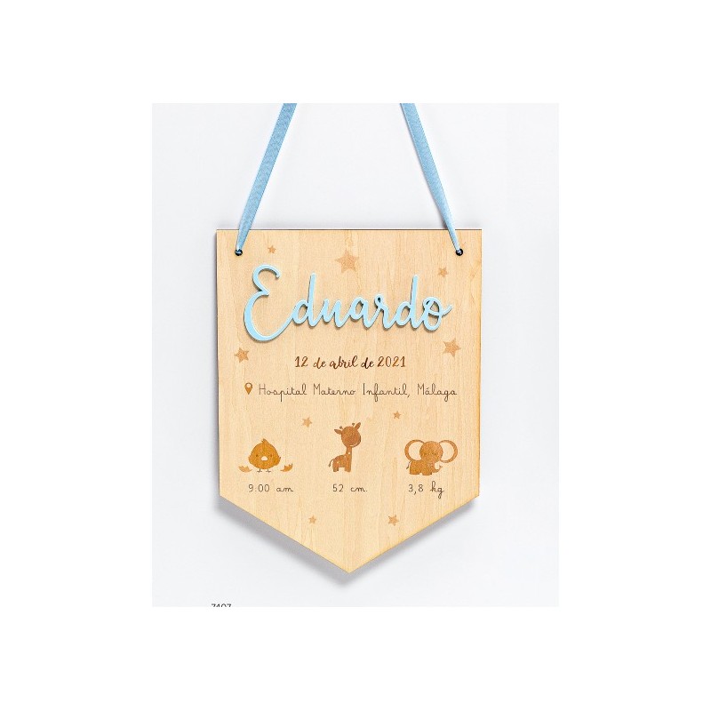 BANDERÍN DE MADERA CON DETALLE DEL BEBÉ