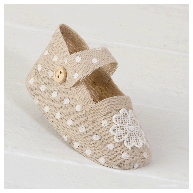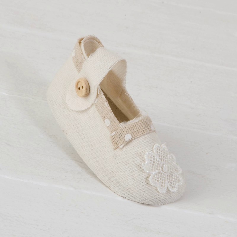 Zapatito decorativo hecho a mano en color marfil. Perfecto como regalo en una fiesta de bebés. Muy originales y representativos.