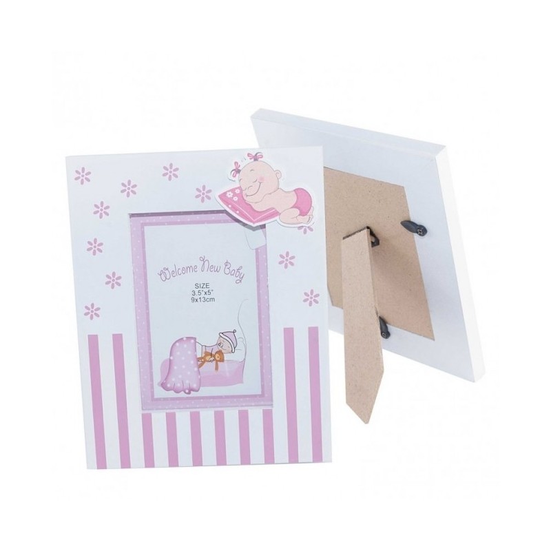 PORTA FOTO MADERA BEBE ROSA