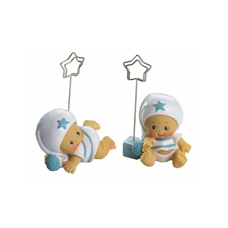 Figura cerámica de 6,5 cm bebé niño con pijama blanco, con clip para sujetar tarjeta o fotografía pequeñas, se sirven modelos surtidos.
