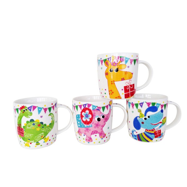 Taza de ceramica infantil, presentada en caja a juego con el estampado de la taza.