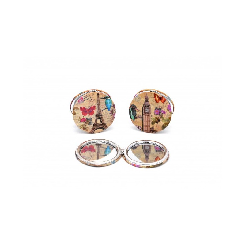 Original espejo cuyo interior lleva dos espejos para verse bien y el exterior el dibujo de Paris o Londres y se sirve surtido.